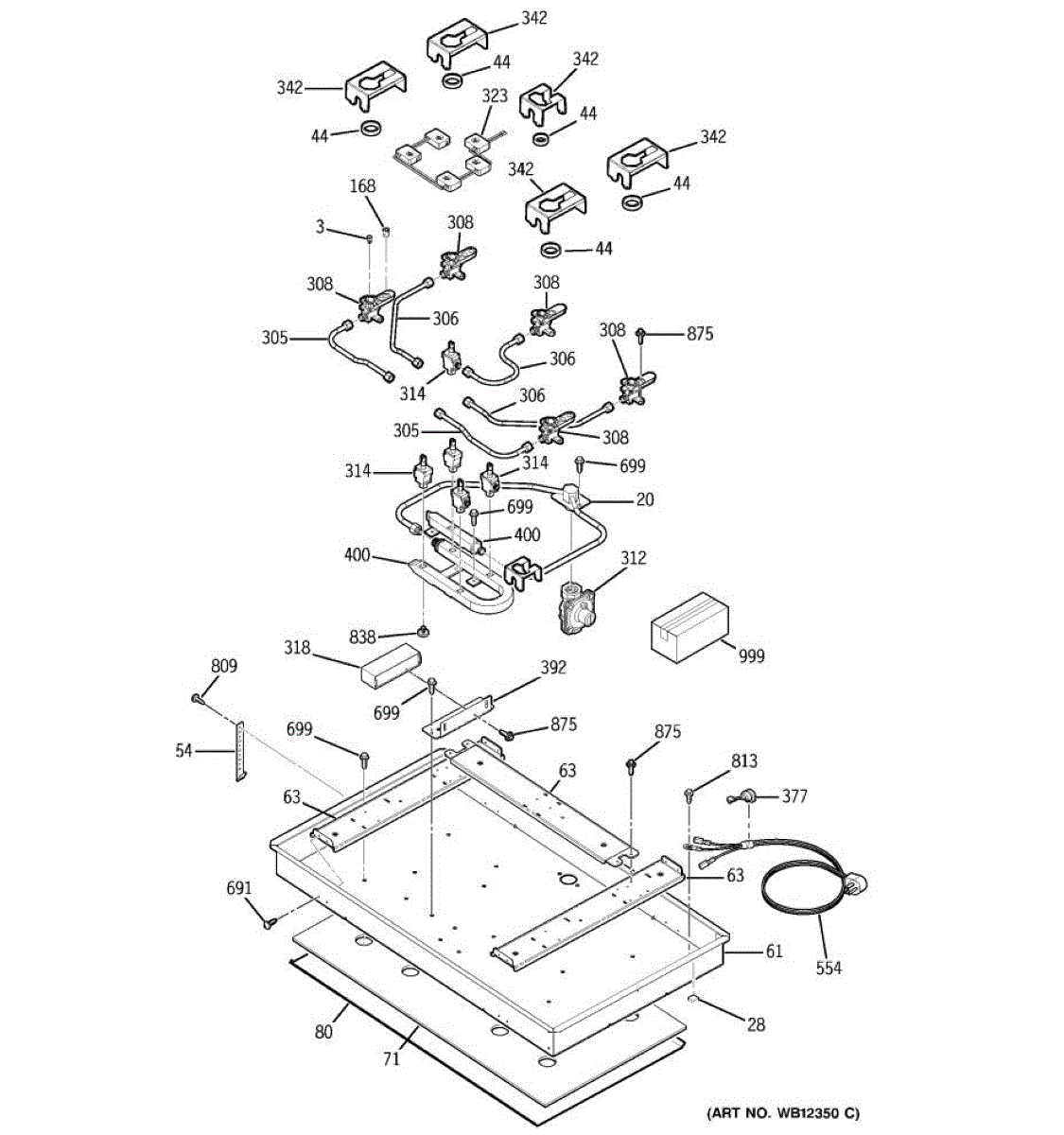 Maintop support plate mounts beneath your cooktop burner assembly. Replace if the original is cracked, warped, or corroded to restore stability.