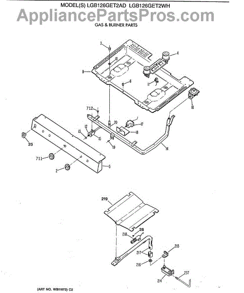 Parts for Ge LGB126GET2AD: 01 - Gas & Burner Parts