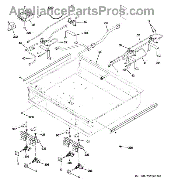 This pipe manifold assembly supplies and distributes gas to a range's burners so the cooktop lights and heats consistently. It replaces a damaged or leaking manifold to restore safe fuel delivery to each burner. What it does: