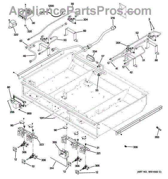 Parts for Ge ZDP364LDP1SS: 01 - Gas & Burner Parts