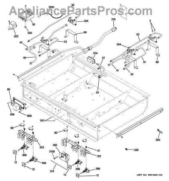 This pipe manifold assembly supplies and distributes gas to a range's burners so the cooktop lights and heats consistently. It replaces a damaged or leaking manifold to restore safe fuel delivery to each burner. What it does: