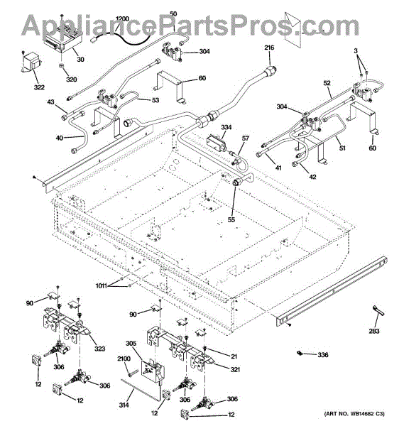 This pipe manifold assembly supplies and distributes gas to a range's burners so the cooktop lights and heats consistently. It replaces a damaged or leaking manifold to restore safe fuel delivery to each burner. What it does: