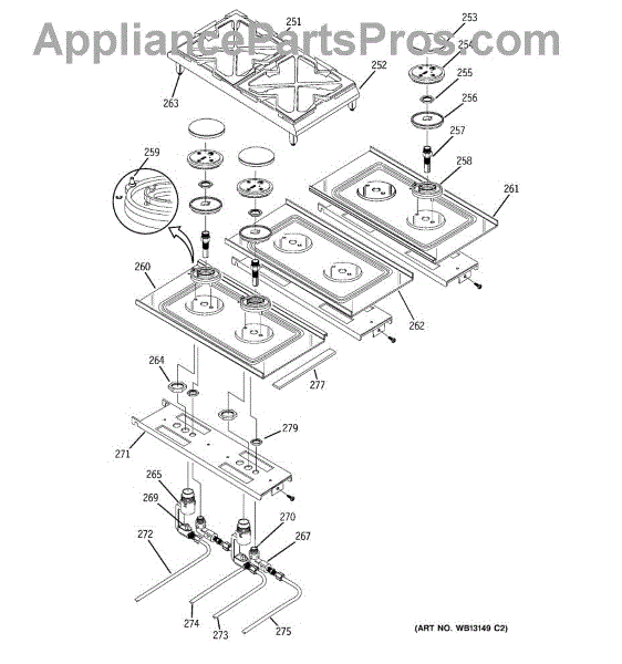 This formed gas tube routes fuel to the front surface-burner section on select gas ranges and cooktops. Replacing a damaged or clogged tube restores proper gas flow and reliable ignition to the front burners.