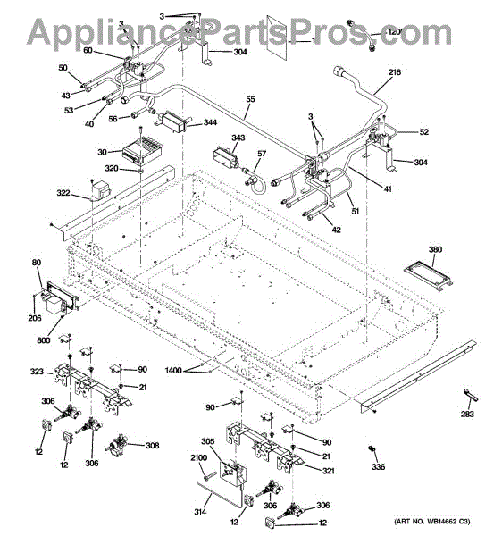 This pipe manifold assembly routes gas from the supply to the cooktop burners so the range's burners get a steady, metered fuel feed for normal flame operation. It replaces a damaged or leaking manifold to restore safe gas delivery. What it does