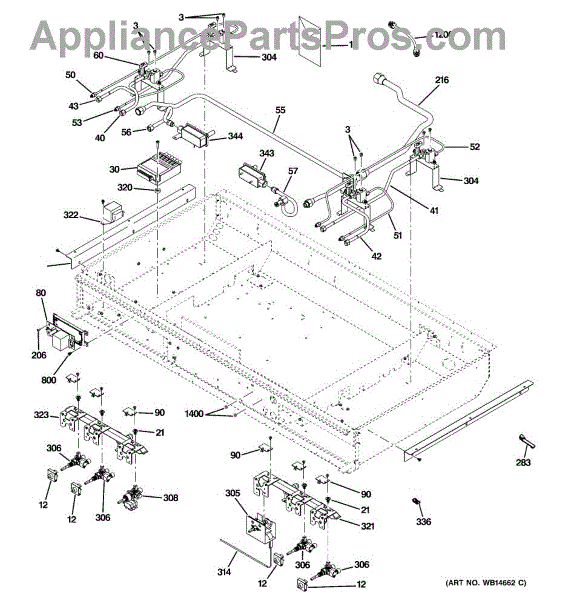 This pipe manifold assembly routes gas from the supply to the cooktop burners so the range's burners get a steady, metered fuel feed for normal flame operation. It replaces a damaged or leaking manifold to restore safe gas delivery. What it does