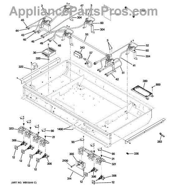 This pipe manifold assembly routes gas from the supply to the cooktop burners so the range's burners get a steady, metered fuel feed for normal flame operation. It replaces a damaged or leaking manifold to restore safe gas delivery. What it does