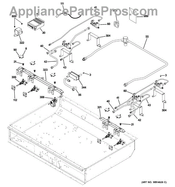 This pipe manifold assembly routes gas from the range's main valve to the individual burners, restoring proper fuel flow for reliable heating. Designed to replace a worn or damaged manifold to help get burners operating correctly. What it does: