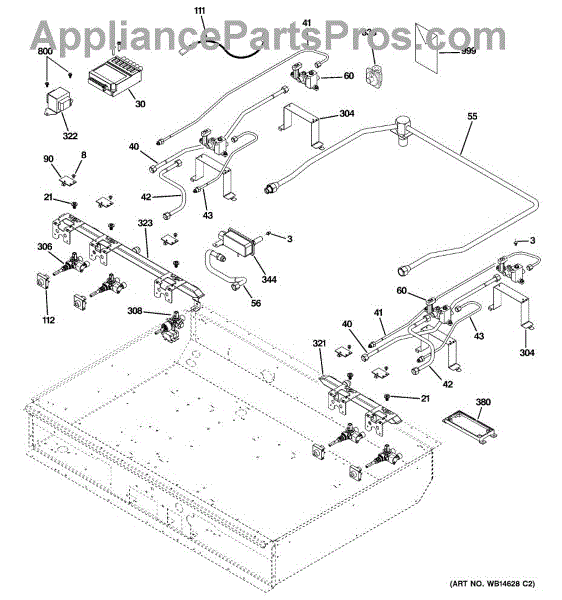 This pipe manifold assembly routes gas from the range's main valve to the individual burners, restoring proper fuel flow for reliable heating. Designed to replace a worn or damaged manifold to help get burners operating correctly. What it does: