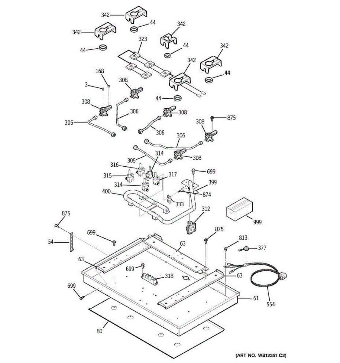 The Spark Switch Assembly is an OEM replacement part for GE gas ranges. It helps ignite gas burners safely during cooking. Includes all five switches and harness