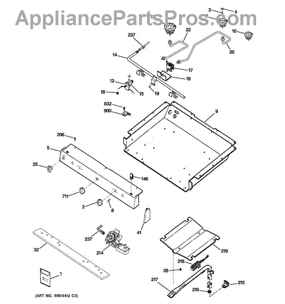 This bracket secures the cooktop/main top to the appliance chassis to keep the surface stable and properly aligned. Replacing a bent or missing bracket can eliminate looseness, rattles, and visible gaps so the top seats correctly.