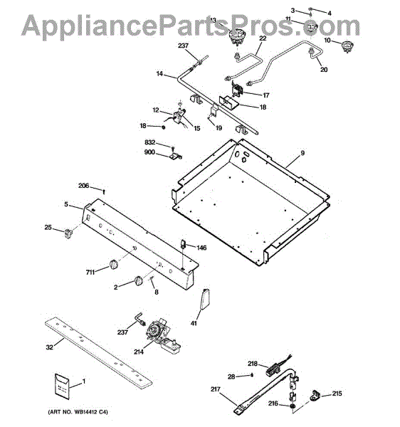 This bracket secures the cooktop/main top to the appliance chassis to keep the surface stable and properly aligned. Replacing a bent or missing bracket can eliminate looseness, rattles, and visible gaps so the top seats correctly.