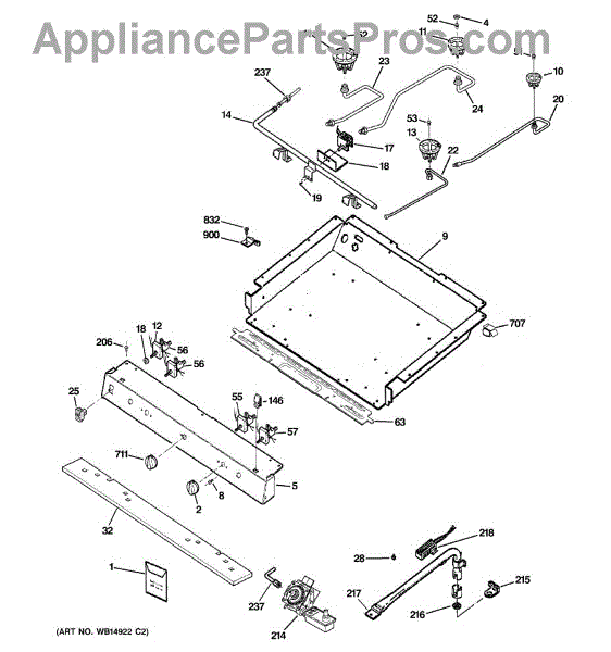 This bracket secures the cooktop/main top to the appliance chassis to keep the surface stable and properly aligned. Replacing a bent or missing bracket can eliminate looseness, rattles, and visible gaps so the top seats correctly.
