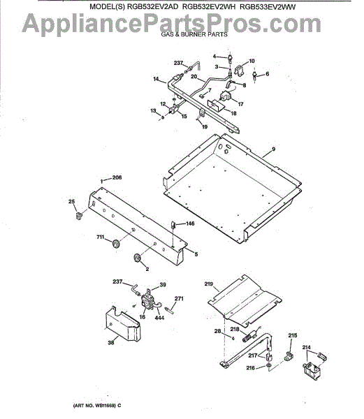 Parts for Ge RGB532EV2WH: 01 - Gas & Burner Parts