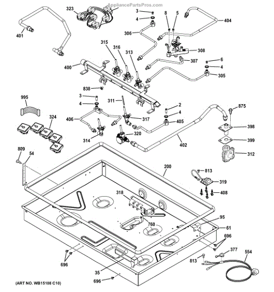 This tube burner supplies and shapes the gas flame for the right-front cooktop burner, restoring proper heating and even flame distribution. It's a direct-replacement cooktop component used on compatible GE gas ranges. What it does: