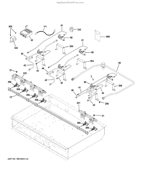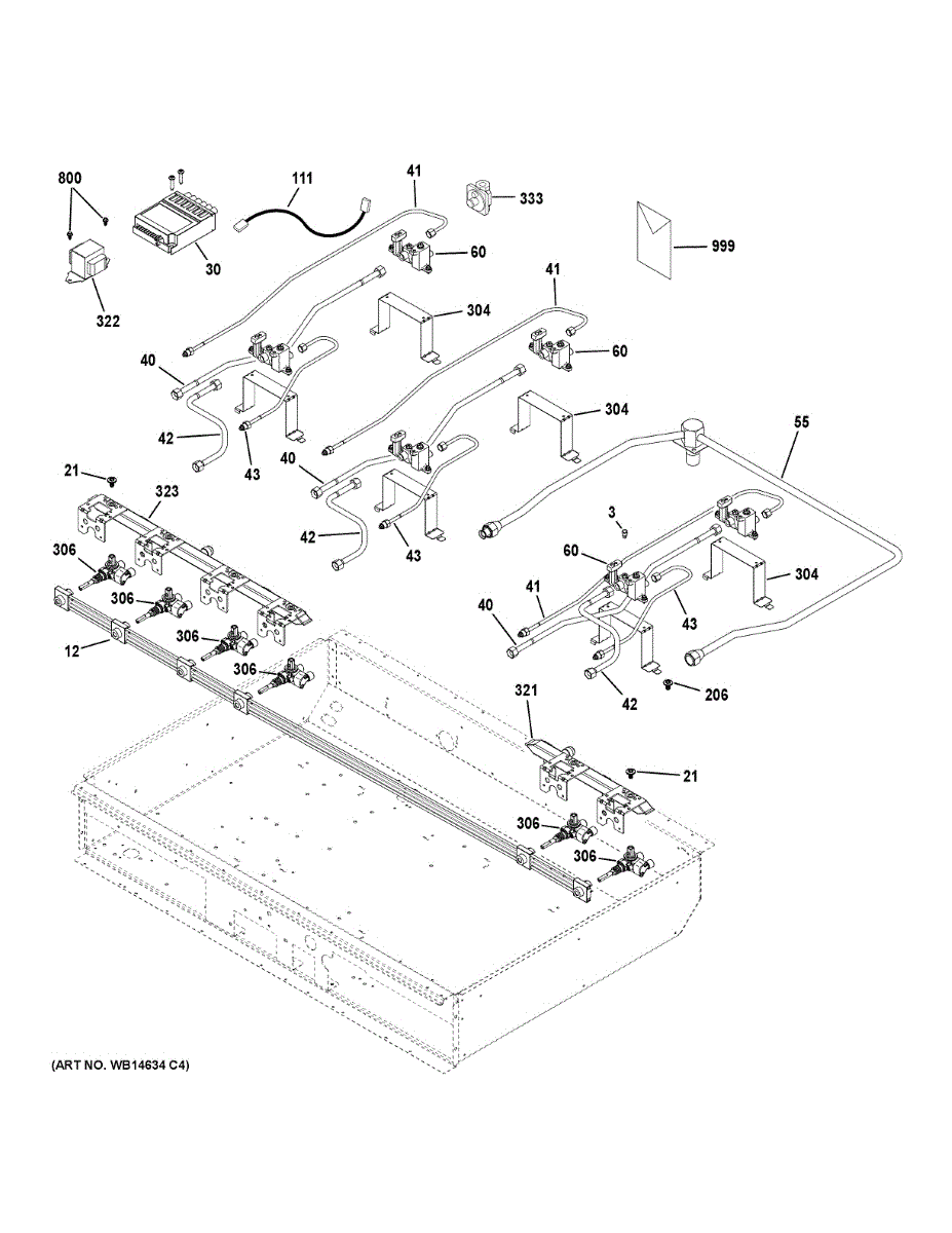 This pipe manifold assembly routes gas from the range's main valve to the individual burners, restoring proper fuel flow for reliable heating. Designed to replace a worn or damaged manifold to help get burners operating correctly. What it does: