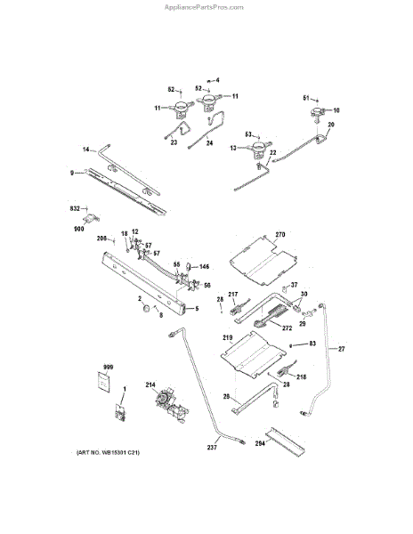 The Elbow 90° Asm is an OEM replacement part for GE gas ranges. It joins sections of burner piping at precise right angles, guiding fuel and air flow to burner heads.