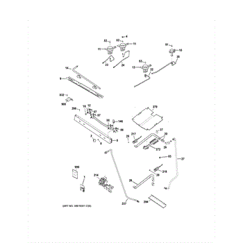 The Elbow 90° Asm is an OEM replacement part for GE gas ranges. It joins sections of burner piping at precise right angles, guiding fuel and air flow to burner heads.