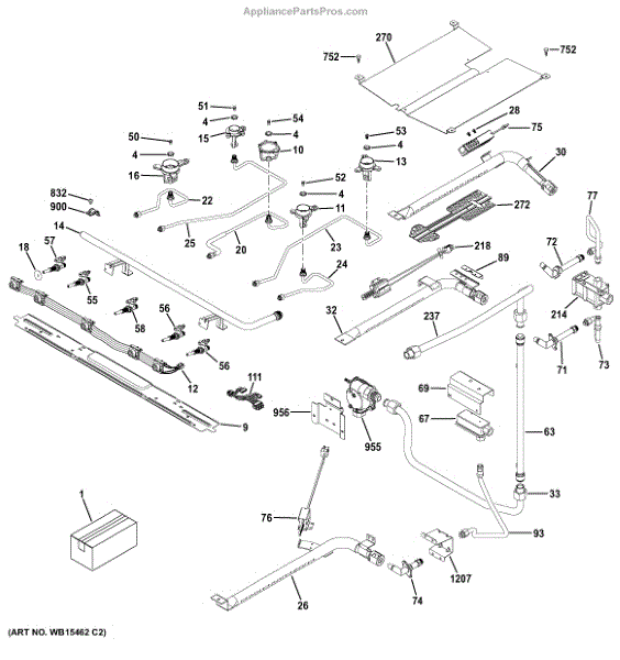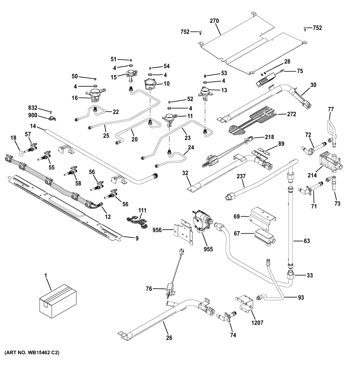 The Valve and Burner Assembly is an OEM part for GE gas ranges. As the central mechanism delivering gas fuel to each burner, it works to control flames precisely while maintaining consistent heat levels.