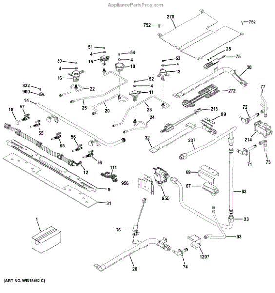 The Valve and Burner Assembly is an OEM part for GE gas ranges. As the central mechanism delivering gas fuel to each burner, it works to control flames precisely while maintaining consistent heat levels.