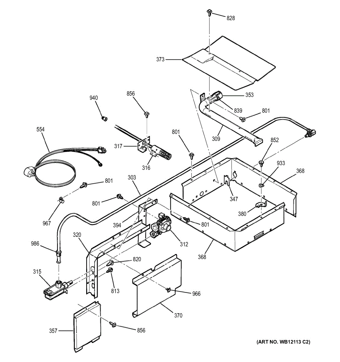 Delivers regulated gas from the supply line to the oven burner. Replace if the tube is cracked, orifice is clogged, or assembly is damaged or missing.