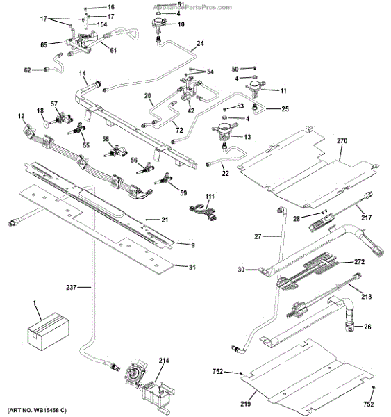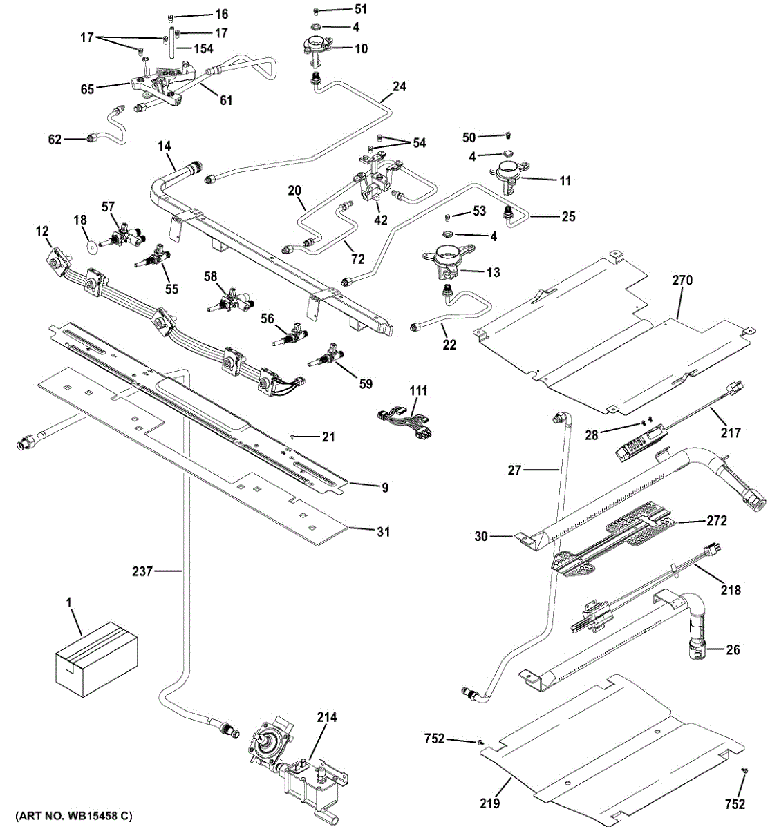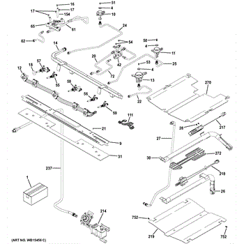 This manifold pipe routes gas from the range's valve assembly to the individual cooktop burners, restoring safe and consistent fuel delivery for reliable burner operation. Replace a damaged or corroded manifold to stop leaks and restore proper flame distribution. What it does: