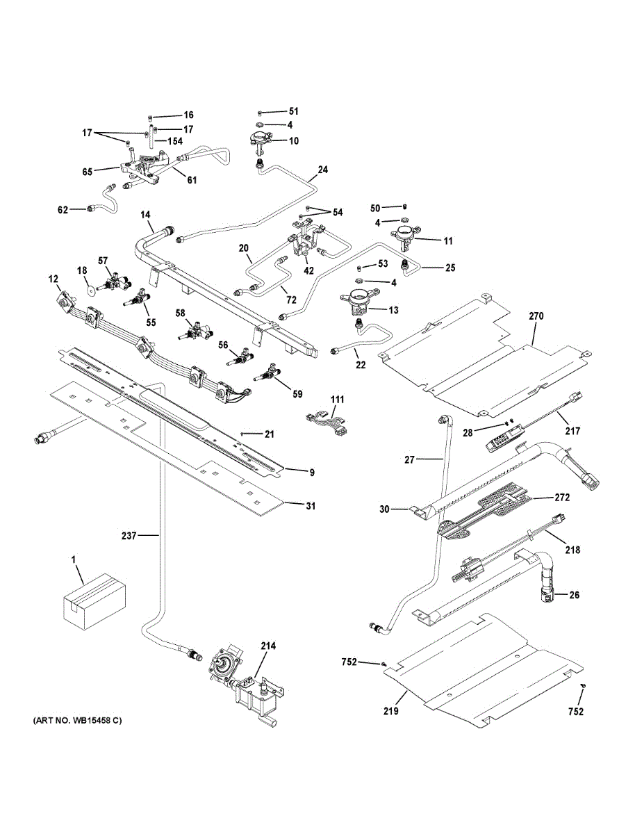 This manifold pipe routes gas from the range's valve assembly to the individual cooktop burners, restoring safe and consistent fuel delivery for reliable burner operation. Replace a damaged or corroded manifold to stop leaks and restore proper flame distribution. What it does: