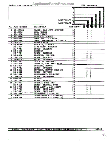Parts for Maytag LNC-8753A77: Gas Carrying Page 2 Parts