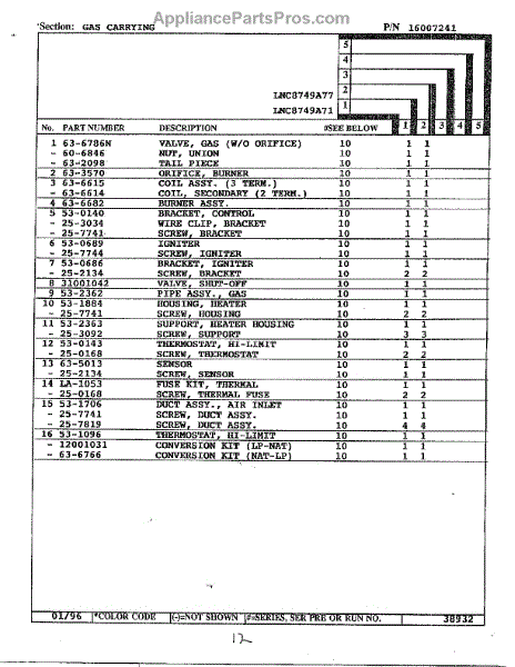 Parts for Maytag LNC8749A77: Gas Carrying Page 2 Parts