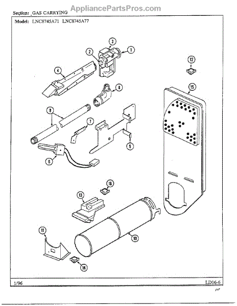 Parts for Maytag LNC-8745A71: Gas Carrying Parts