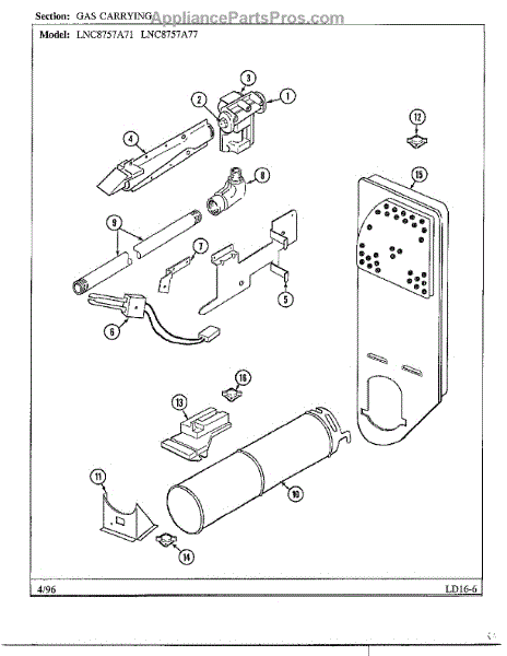 Parts for Maytag LNC-8757A71: Gas Carrying Parts