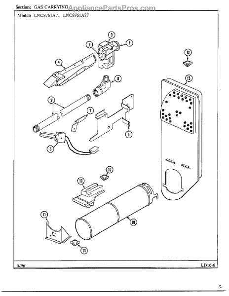 Parts for Maytag LNC-8761A77: Gas Carrying Parts