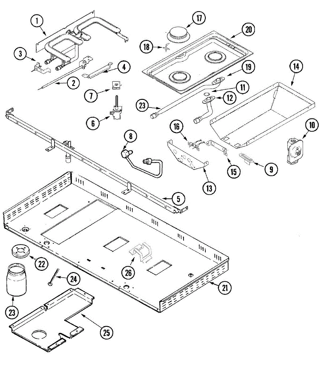 This is the replacement cooktop, also called the main top, for sealed-burner gas units. It forms the cooking surface around the burners to contain spills, restore appearance, and keep grates and burner parts seated securely for safe, even heating.