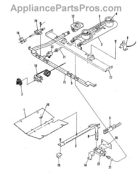 For top surface burners. Configuration: 2 + 0.