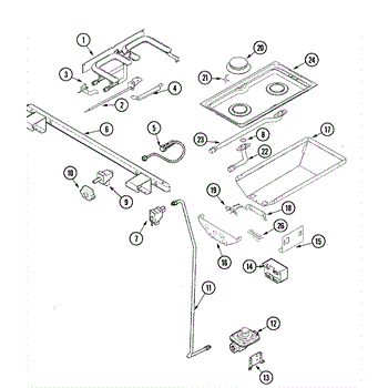 This replacement E-shaped grill burner supplies an even gas flame to the grill section of compatible cooktops/ranges, restoring consistent grilling performance and heat distribution for searing and cooking.
