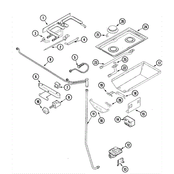 This replacement E-shaped grill burner supplies an even gas flame to the grill section of compatible cooktops/ranges, restoring consistent grilling performance and heat distribution for searing and cooking.