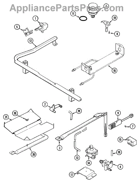 Regulates gas pressure to your range's burners and oven. Replace if the regulator is cracked, leaking, or causing inconsistent gas flow to your cooktop.