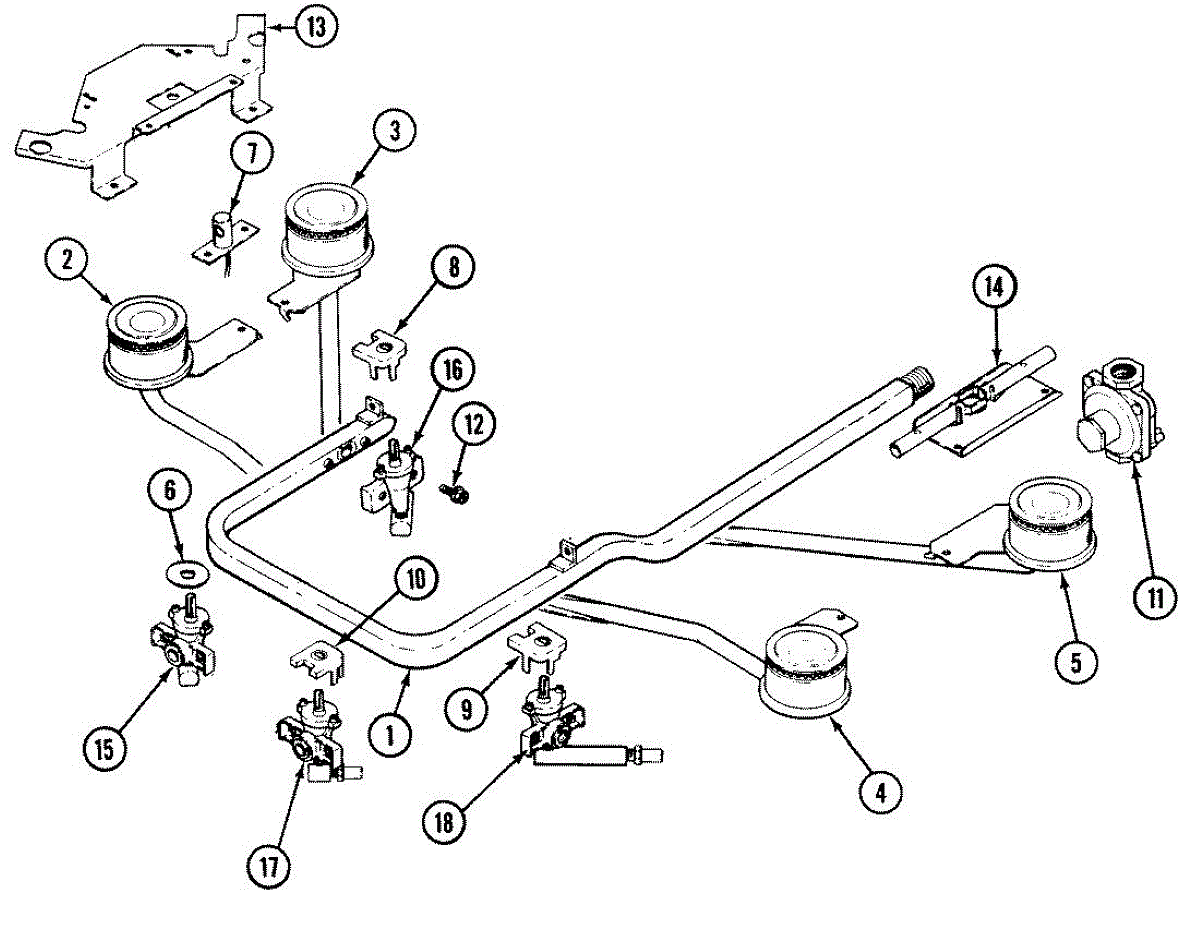Parts for Magic Chef 8311PS: 01 - Gas Controls Parts