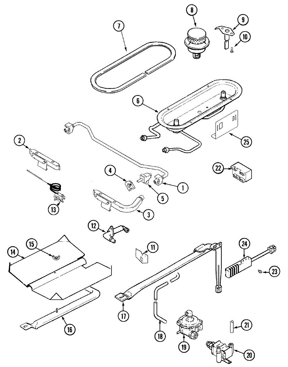 Sealed burner head for gas ranges. Sits on top of the cooktop to direct gas flow and create an even flame. Replace if cracked, corroded, or damaged.