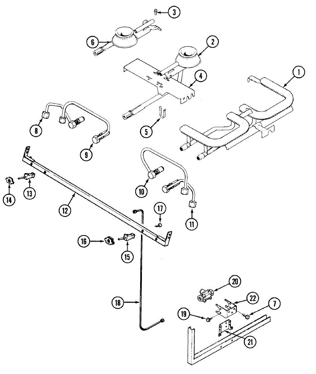 This genuine OEM part is a cooktop grill burner. The grill burner is the component part that allows the gas flame to spark so that the stove can perform its job of cooking and heating. If the stove burners are no longer producing a flame or not turning on at all, it might be time to replace the grill burner. Luckily this is a relatively simple repair.To start, make sure that all power to the stove has been turned off by either unplugging the appliance or shutting off the circuit breaker. Close the shut off valve on the propane gas tank. Remove the cooking grate and the flame tamer from the top of the damaged burner. Pull the cotter pin out of the back of the burner. Remove the burner mounting screws. Pull the burner back then up to remove it from the manifold and remove the burner. Place the new burner into the manifold and fasten the mounting screws. Reinstall the cotter pin and flame tamer and restore the gas and power back to the appliance.This replacement part is sold individually and is compatible with Whirlpool, Maytag, KitchenAid, Jenn-Air, Amana, Magic Chef, Admiral, Norge, Roper, and Sears/Kenmore brand stoves.