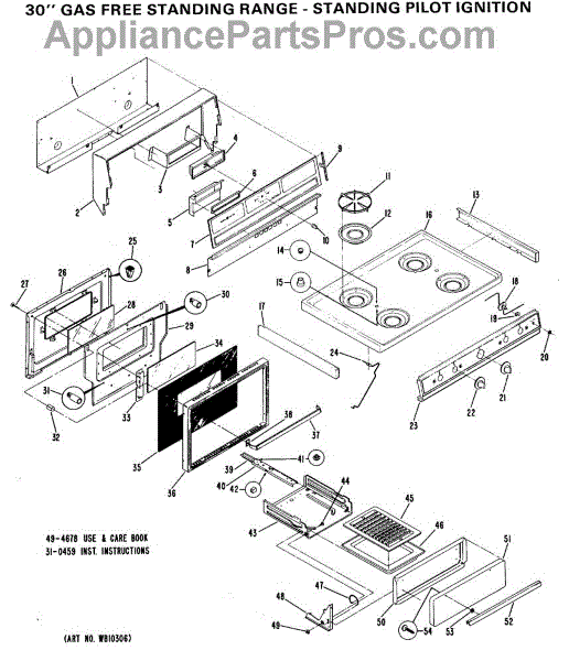 Parts for Ge JGBC17GPH3: 01 - 30`` Gas Free Standing Range - Standing Pilot Ignition Parts