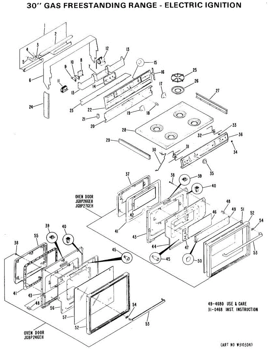 Parts for Ge JGBP27GEH2: 02 - 30`` Gas Freestanding Range - Electric Ignition Parts