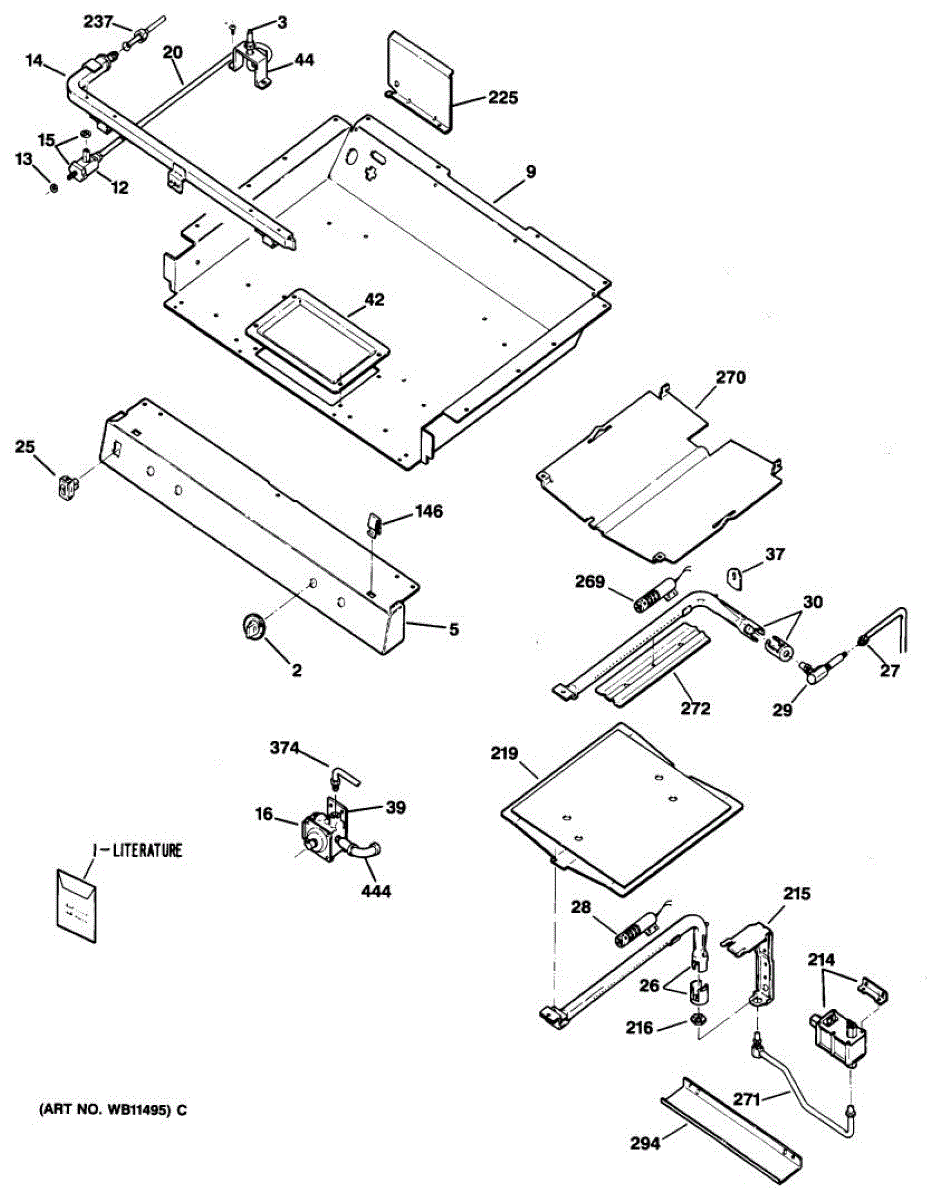 Broil shield for gas ranges. Mounts inside the oven cavity to protect components from direct heat. Replace if cracked, warped, or damaged.