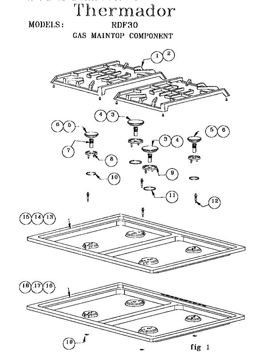 Parts for Thermador RDF30RS (9707 & UP): Gas Maintop Component Parts