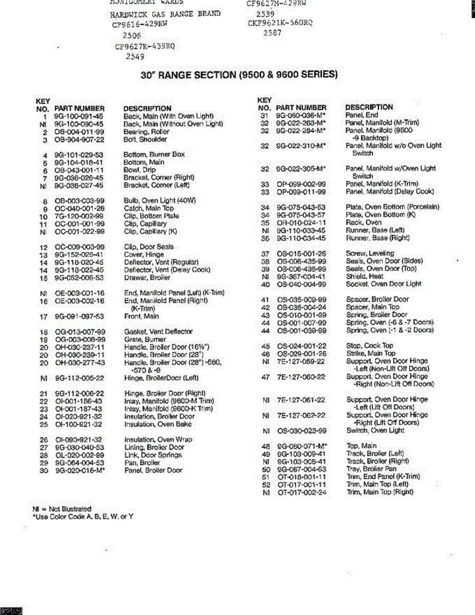 Parts for Hardwick 2587: Gas Range 30" Range Section Page 2 Parts