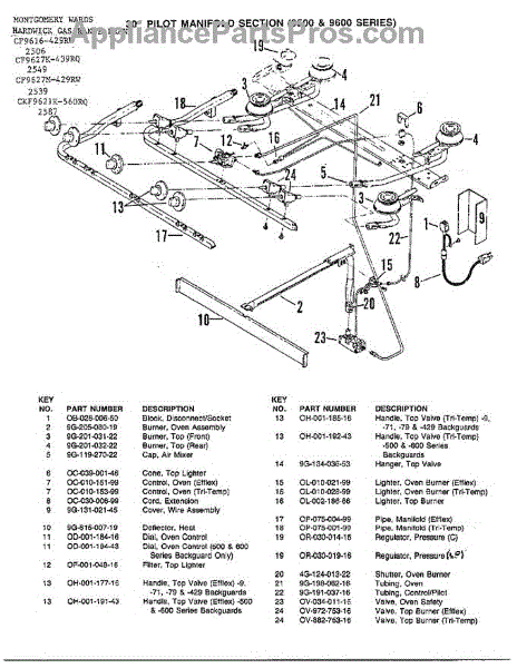 Parts for Hardwick CF9616-429RW: Gas Range 30" Pilot Manifold Section Parts