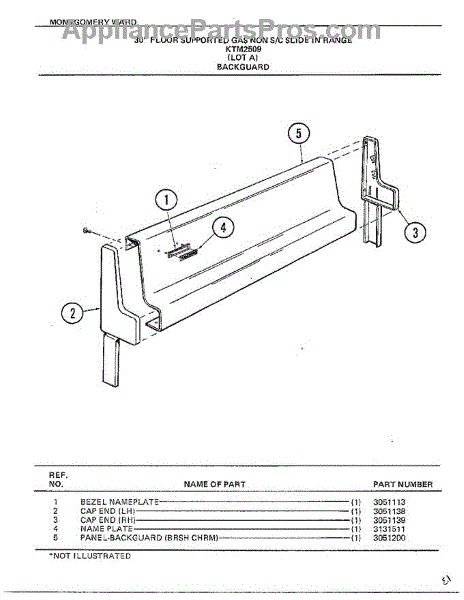 Parts for Frigidaire 2509A: Gas Range-Backguard Parts