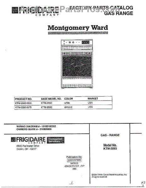 Parts for Frigidaire 2893-80B: Gas Range Cover Page Parts