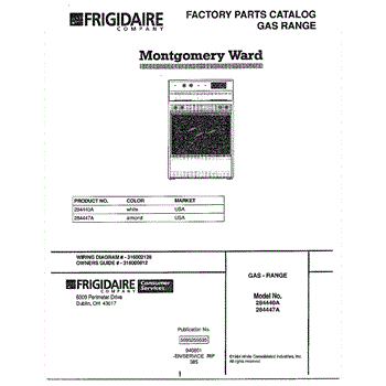 Parts for Frigidaire 284440A: Gas Range Front Cover Parts
