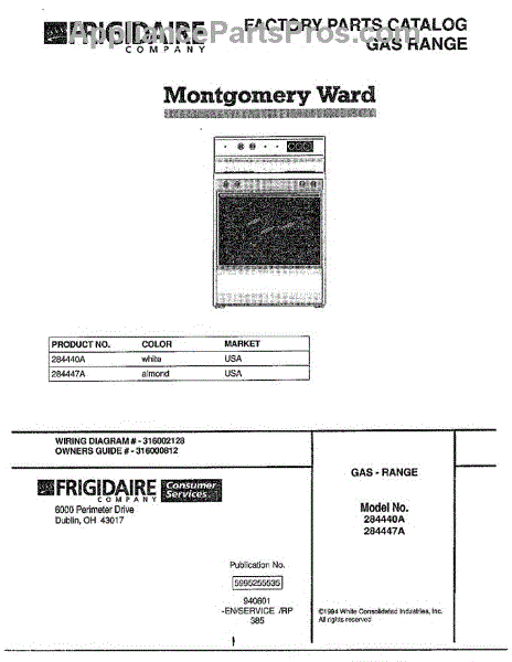 Parts for Frigidaire 284447A: Gas Range Front Cover Parts