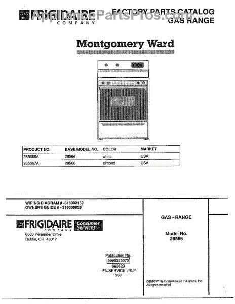 Parts for Frigidaire 285660A: Gas Range Front Cover Parts